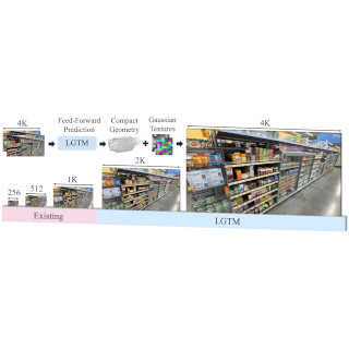 The first native 4K feed-forward method that predicts compact textured Gaussians, decoupling